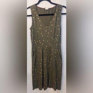 Boden Melinda Jersey Dress in Olive Green and Gold Polka Dot- size 6