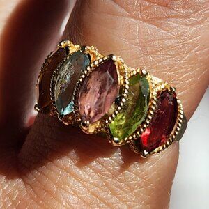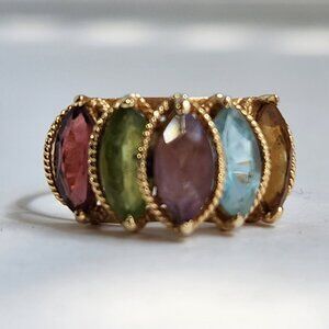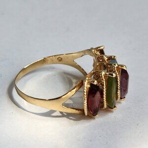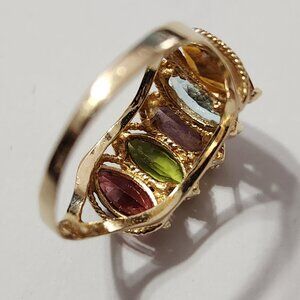 VTG "PJT 14K 585" 14k Yellow Gold Garnet Peridot Topaz & Amethyst Ring Sz 7