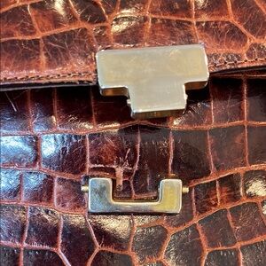 Lord & Taylor Croc-Embossed Brown Leather Shoulder Bag made in Italy