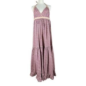 Vtg Moda International VS Y2K Halter Maxi Dress XL Ditzy Floral Cottagecore Boho