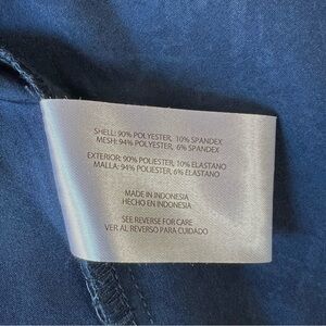 Orvis Embossed Pull On Travel Skort is a dark blue fabric with 2 front zip pockets and 2 back welt pockets