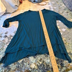 Eileen Fisher teal tunic with 3/4 sleeves, scoop neck and flattering hemline.