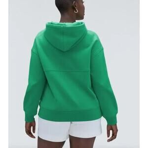 The pullover closure makes it easy to wear, while the solid green color and pullover style add a touch of elegance to your look. Made with high-quality cotton material, this hoodie is durable and long-lasting. Its brand, Everlane, is known for its commitment to sustainable and ethical fashion. Add this stylish and comfortable hoodie to your wardrobe today.