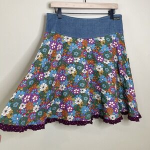 Floral bee full a line pleated flowers skirt pockets teacher summer ms frizz xl