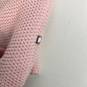 This charming sweater from Oeuf features a soft pink hue with adorable white bunny ear details on the hood. Crafted with a textured knit pattern, it offers both style and comfort, making it a whimsical addition to any wardrobe.