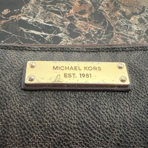 Chic Michael Kors wallet with signature pattern. Features gold-tone accents. Stylish and functional.