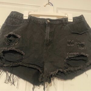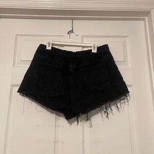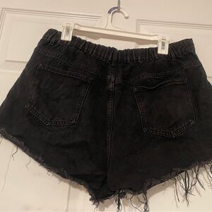 High-Waisted Distressed Jean Shorts with Fray & Elastic Waist