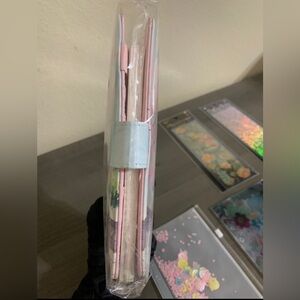 Beautiful stationery set with a floral notebook, decorative stickers, and colorful heart sheet. Includes a pink pen.