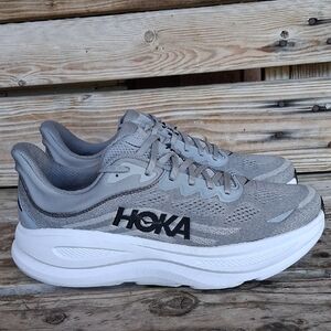 shoes are in excellent condition .Experience unparalleled comfort and breathability with these Hoka athletic shoes, featuring a deep navy blue mesh upper and signature chunky midsole for optimal impact absorption. The sleek design is complemented by a light blue accent layer, making them perfect for running and other athletic activities.