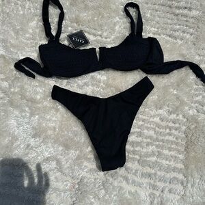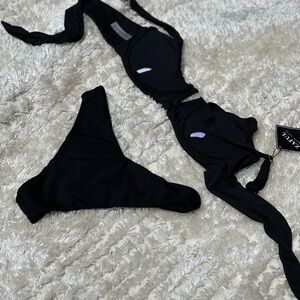 Stylish and comfortable, this black swimwear set is perfect for your beach outings. Enjoy a sleek look with this elegant design. Size is Medium