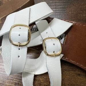 Steve Madden Donddi Sandals 6.5 White Leather Flat Buckle Strap Open Toe Chic