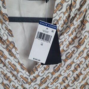 NWT LAUREN RALPH LAUREN Equestrian-Print Georgette Dress, Size 10. Timeless and refined, this elegant georgette dress from Lauren Ralph Lauren features a sophisticated equestrian-inspired print, a flattering belted waist, and a flowy midi silhouette that moves beautifully with every step.