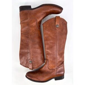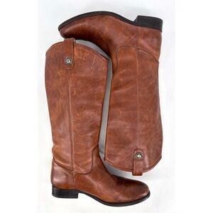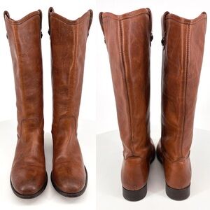 FRYE | Melissa Button Tall Leather Riding Boots in Brown Cognac | Sz 9.5