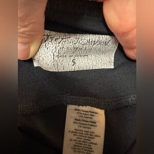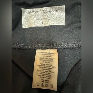 Stylish black leggings with intricate lace design. Perfect for adding elegance to your outfit. Not just for exercise! Wear under tunics! Has front little inside pocket. Betsey Johnson logo on back.