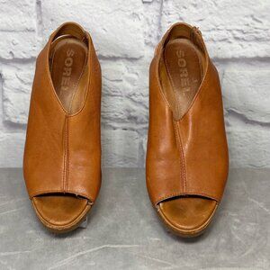 Sorel After Hours Tan Leather Slingback Wedges