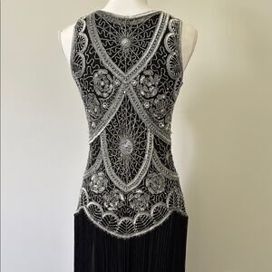 Elegant Flapper Style Black and Silver Women's Dress
