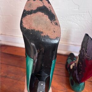 Parsons trained and famous for her shoes and illustration these boots are a piece of wearable art. Some of her designs are featured in The Met costume history