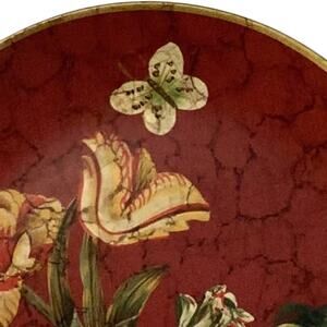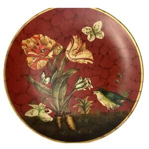 Collectible Red Bird Butterfly Floral Gold Rim Decorative Heavy Ceramic Plate