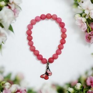 Brand new, made of 4 mm pink natural cube agate beads, 4 mm faceted natural onyx beads, size 7 in