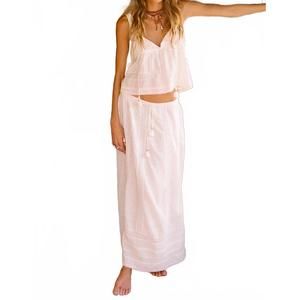 Step into summer with the Spell Serendipity Lace Skirt in a dreamy Jasmine hue, perfect for vacation or 4th of July celebrations. This maxi skirt features a solid pattern crafted from 100% organic cotton, ensuring both comfort and style. Offering a whimsical touch with its flowy lace detailing and tassel ties, it comes with a convenient pull-on closure.