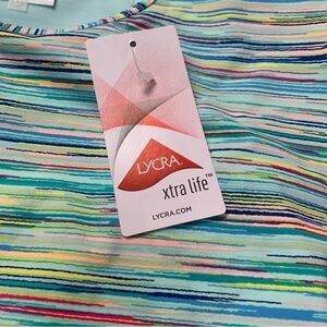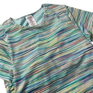 NWT Lands' End Green Multicolored Fitted Short Sleeve Swim Tee Women’s Size 6