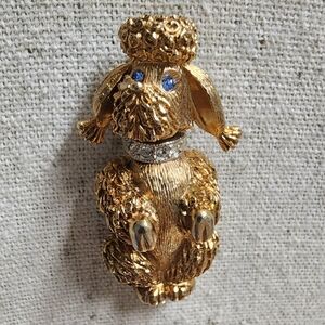 Enchanting fairy pendant with blue and gold accents. Features sparkling details and delicate design.large folly dusted blue enamel snowflake with sparkling marquis rhinestones in the wings. beautiful blue AB rhinestones in her dress. she's a fantastic vintage piece to wear as a brooch or pendant. she has a blue ribbon, that can be used to hang her as an ornament. pre-owned excellent condition. there is a KF box but it has some damage.