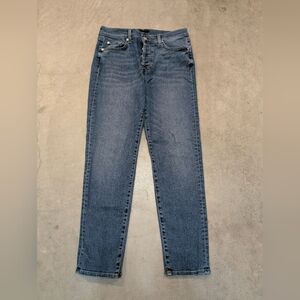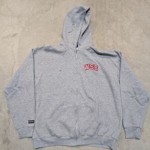 Navy hoodie with Broncos logo. Features a front pocket and drawstring hood.