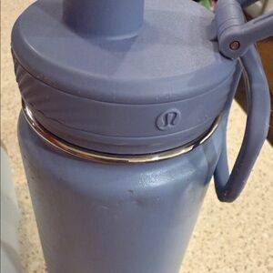 20oz Stanley flip straw water bottle, needs straw piece inside lid. 24oz lululemon water bottle… both show wear, the lilulemon has a few small dings.
