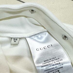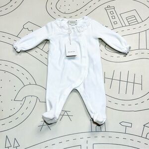 Elegant Gucci baby footie in pure white. Soft and stylish for your baby.