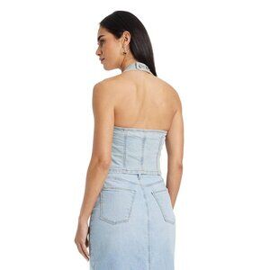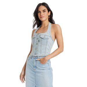 NWT Universal Thread Cropped Sleeveless Denim Halter Shirt Light Wash Blue L
