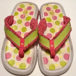 Skechers Pink and Green Polka Dot Vintage Flip Flops Size 8.5