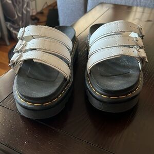 Stylish white strappy platform sandals with buckle details. Perfect for casual outings.