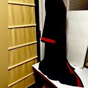 Elegant black robe with striking red accents. Luxurious design by Dior. Perfect for comfort and style. Length 47 to 48 inches