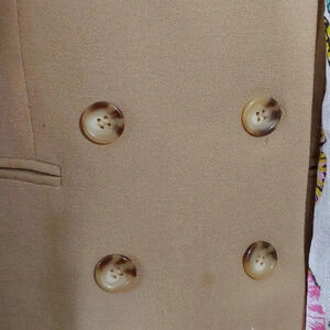 Women's Jones of New York bouble breasted suit jacket. It truly could use a dry cleaning but unfortunately there not one dry cleaners open. And I'm to a fried to try the dry cleaning stuff you buy in the store. I did that once and and left a huhe stain on I was trying to dry clean. There's a few pulls in the material and there's a few spots that the materials like little old best jacket is over 35 years old buy as is so please look at pictures carefully. It really needs to be dry cleaned
