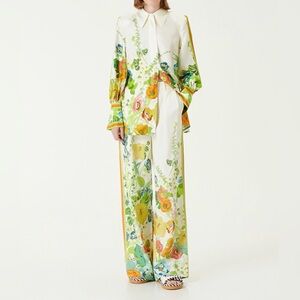 Features subtle gathered ruffles at neck, front button closure, slight short puff sleeve with elastic at the cuffs, gathers at the waist and tiered skirt that comes with a self tie fabric belt. Relaxed fit, we recommend sizing in your true size. Semi sheer, lightweight cotton fabric.
