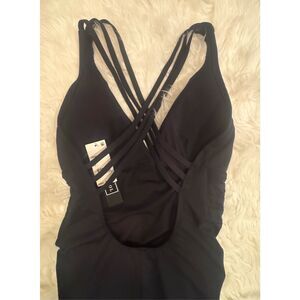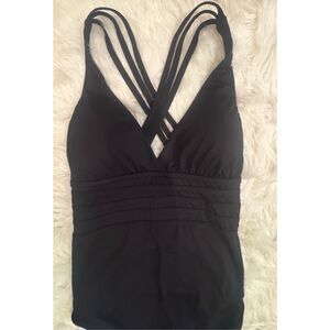 NWT La Blanca Island Goddess Multi-Strap Cross-Back One-Piece Swimsuit Black Size 12