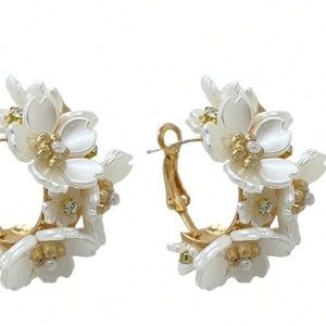 Enhance your style with these chic floral earrings in gold and white. Perfect for any occasion.