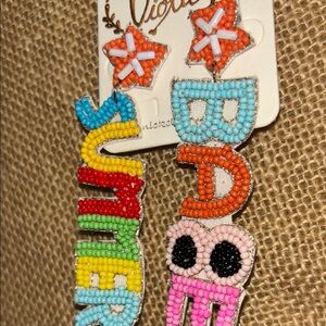 New Viola Multicolor Statement Beaded summer Earrings pierced