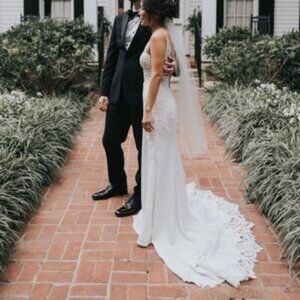 Beautiful Stella York wedding dress in ivory. Style 6648. Worn for wedding day. Professionally dry cleaned. French bustle in place.