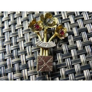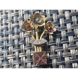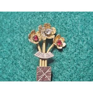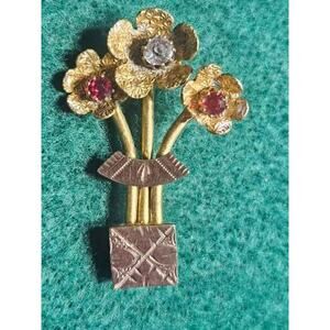 Elegant Crystal Gilt Metal Flower Brooch c 1930