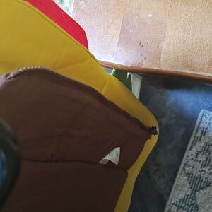 Easy over-the-head and done costume! Has a zipper on one side, too. Burger buns are firm and padded. Toppings are made of pennant-style felt. Size 4-6 but fits much older (just covers less of their legs). Great condition and from a smokefree home.