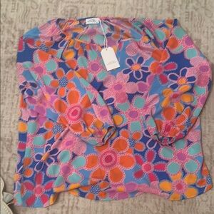 This stylish blouse from LOFT showcases a beautiful blend of black and blue, highlighted by a ruffled bib collar for a chic look. The lightweight fabric and elegant design make it ideal for any occasion, offering both comfort and sophistication.