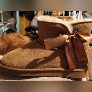 Paw by BEARPAW Amelia Boot Wool Liner, Bow In Hickory Size 8 NWOT