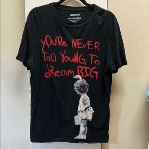 Vibrant graffiti design on a white Dolce & Gabbana t-shirt. Features red, blue, yellow, and black elements.