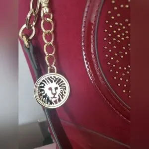 This luxurious tote bag showcases a vibrant red leather with intricate embossed patterns, complemented by gold-tone hardware. Its structured design and glossy finish make it a standout accessory for any occasion.