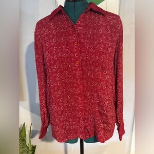 Chic Anthropologie blouse with floral pattern. Features pink and brown hues. Perfect for casual or dressy occasions.