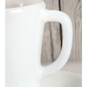 Classic restaurant-style milk-glass cups by Federal Glass—bright-white, heat-proof, and ready to serve up retro charm at every coffee break. The sturdy “D” handles fit comfortably in hand, making this four-piece set as practical as it is collectible.