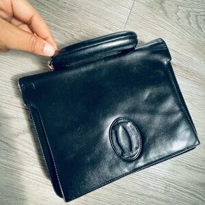 CARTIER BLACK LEATHER VINTAGE TOTE BAG GOLD TONE HARDWARE THE IS CARTIER