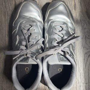 Comfortable silver sneakers with a modern look. Ideal for everyday wear. Used in good condition. The insole has been changed for a more comfortable one the. The originals. More cushy. Size 8.5