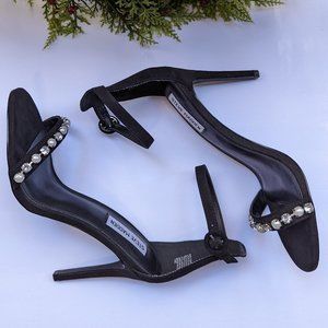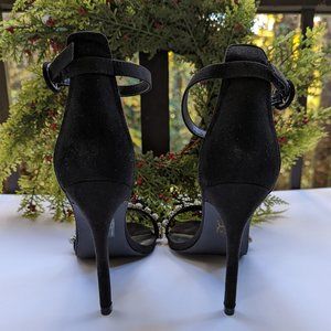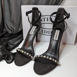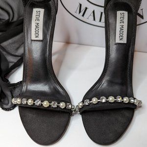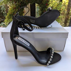 STEVE MADDEN Solitaire Stiletto Sandals Diamond Pearl Studs Ankle Strap Size 9